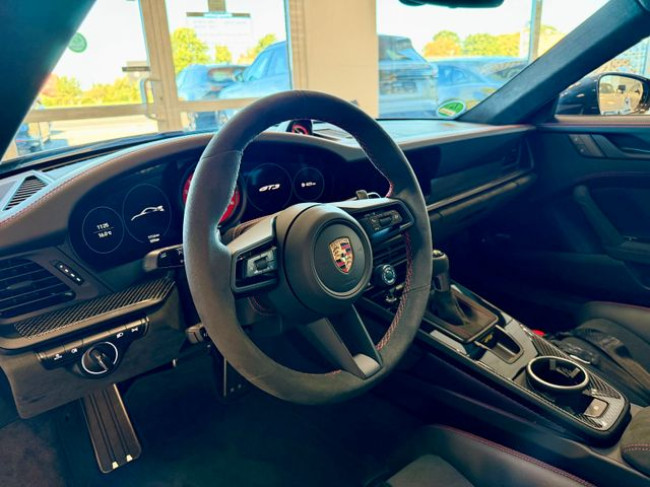 Zum Verkauf steht ein Porsche 992 GT3 Clubsport in tiefschwarz-metallic.