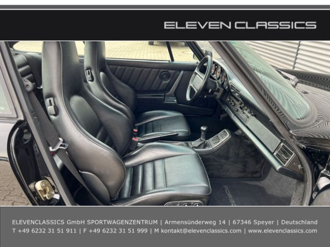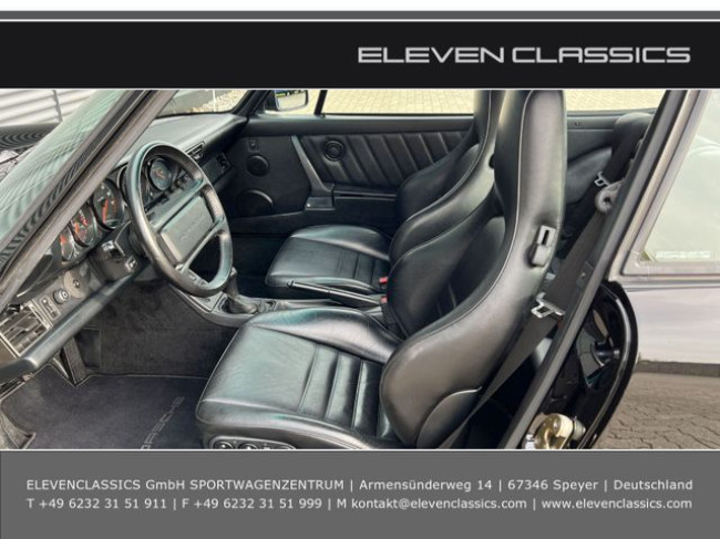 Der 964 präsentiert sich in einem schönen, weitgehend originalen Zustand. Lediglich die originalen Porsche Cup-Felgen, H&R-Tieferlegungsfedern sowie Distanzscheiben wurden nachträglich montiert.