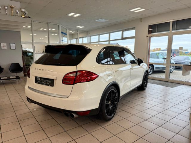 Zum Verkauf steht ein Porsche Cayenne Turbo in sandweiss-metallic.