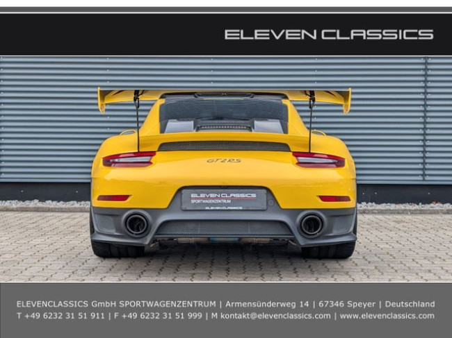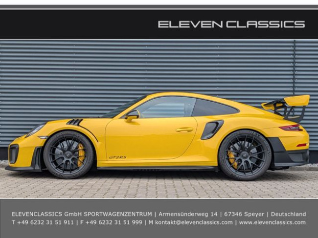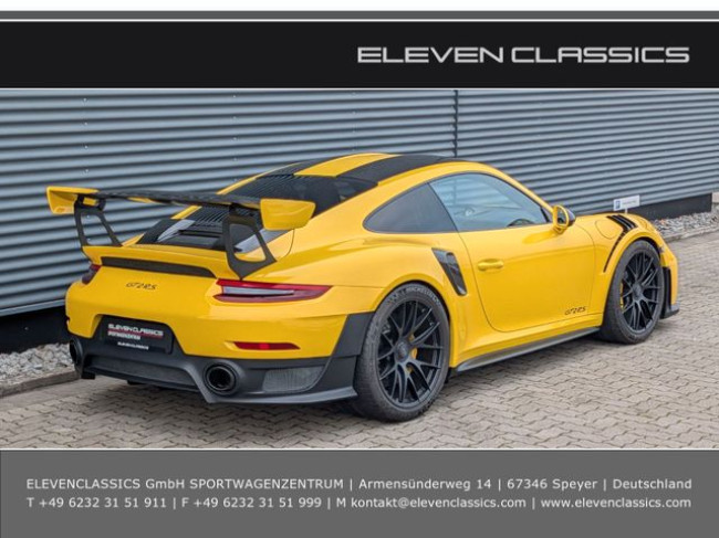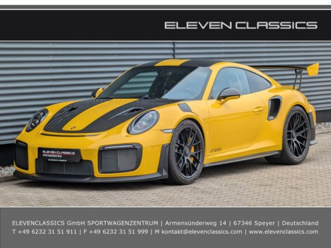 Airbag Fahrer-/Beifahrerseite, Antriebsart: Heckantrieb, Außenspiegel elektr. verstell- und heizbar, beide, Außenspiegel Sport Design, Blinkleuchten LED, Bremssättel Gelb lackiert, Connect Plus (Bluetooth, Apple CarPlay, WLAN, Vehicle-Tracking-System), Dachhimmel Alcantara, Dynamische Motorlagerung (Porsche Active Drivetrain Mount, PADM), Einschaltautomatik für Fahrlicht, Fahrwerk für Motorsport einstellbar, Frontscheibe mit Bandfilter oben, Getränkehalter, GT2 RS, Heckleuchten LED, abgedunkelt, Karosserie: 2-türig, Keramik-Bremsanlage (Porsche Ceramic Composite Brake, PCCB), Kleiderhaken Sitzrückenlehne Leder, Klimaautomatik, Kopf-Schulter-Airbag vorn (Thoraxbag), Leichtbau-Scheinwerfer, Lenkrad (GT Sport - Alcantara / Race-Tex), LM-Felgen (Metallic lackiert), Modellpflege, Motor 3,8 Ltr. - 515 kW Turbo KAT, Multifunktionsanzeige / Bordcomputer, Multimediabuchse AUX-IN und USB-Schnittstelle, Parkbremse elektrisch, Porsche Active Suspension Management (PASM), Porsche Communications Management (PCM) inkl. Online - Navigationsmodul, Radnaben mit Zentralverschluss, Reifen-Reparaturkit, Reifendruck-Kontrollsystem, Schadstoffarm nach Abgasnorm Euro 6, Schalt-/Wählhebelgriff Alcantara / Race-Tex, Sitzbezug / Polsterung: Alcantara / Kunstleder, Tankdeckel Alu-Optik, Universal-Schnittstelle Audio, Verglasung getönt, Vollschalensitze vorn, Vorrüstung Mobiltelefon/Handy mit Bluetooth-Schnittstelle, Ziffernblatt Drehzahlmesser, farbig