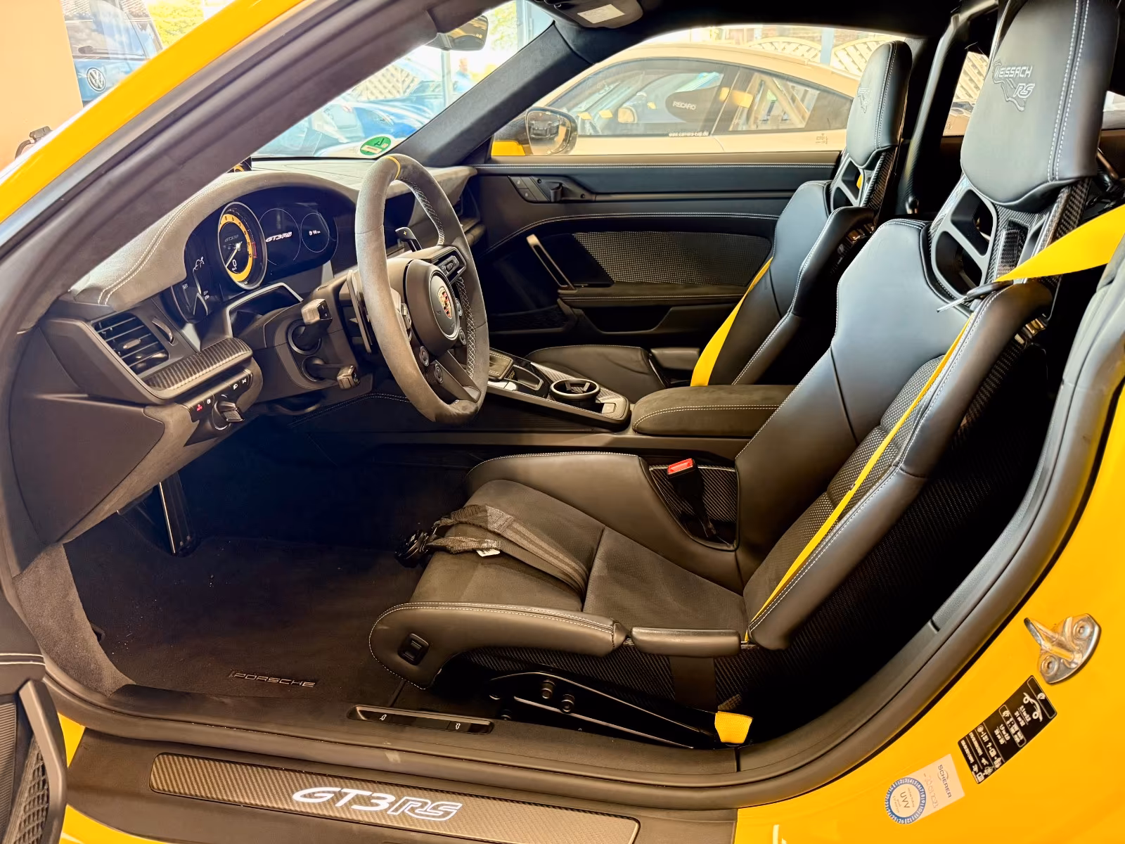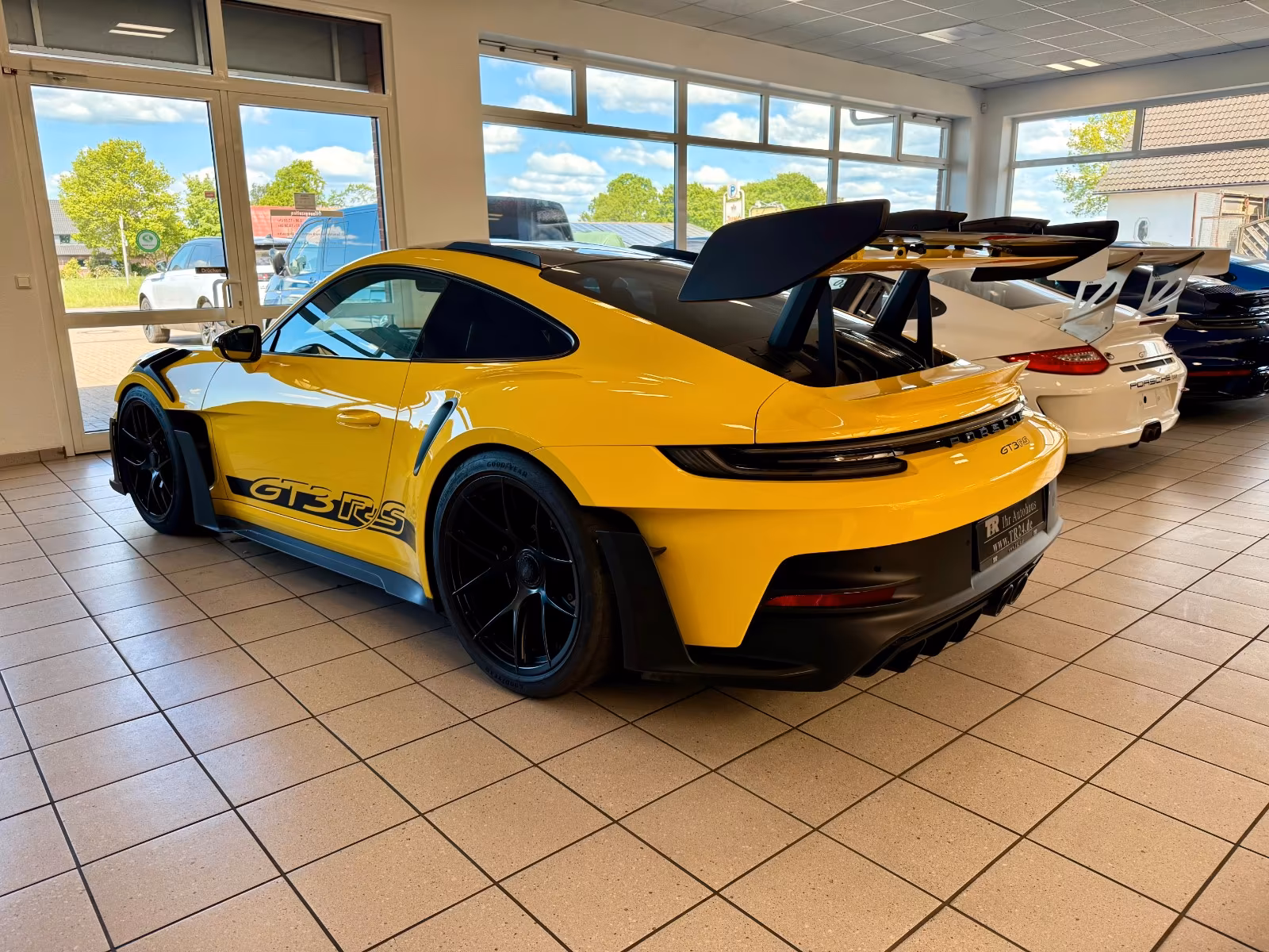 Zum Verkauf steht ein Porsche 992 GT3 RS WEISSACH in racinggelb.