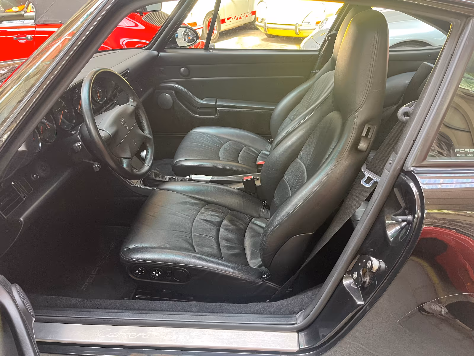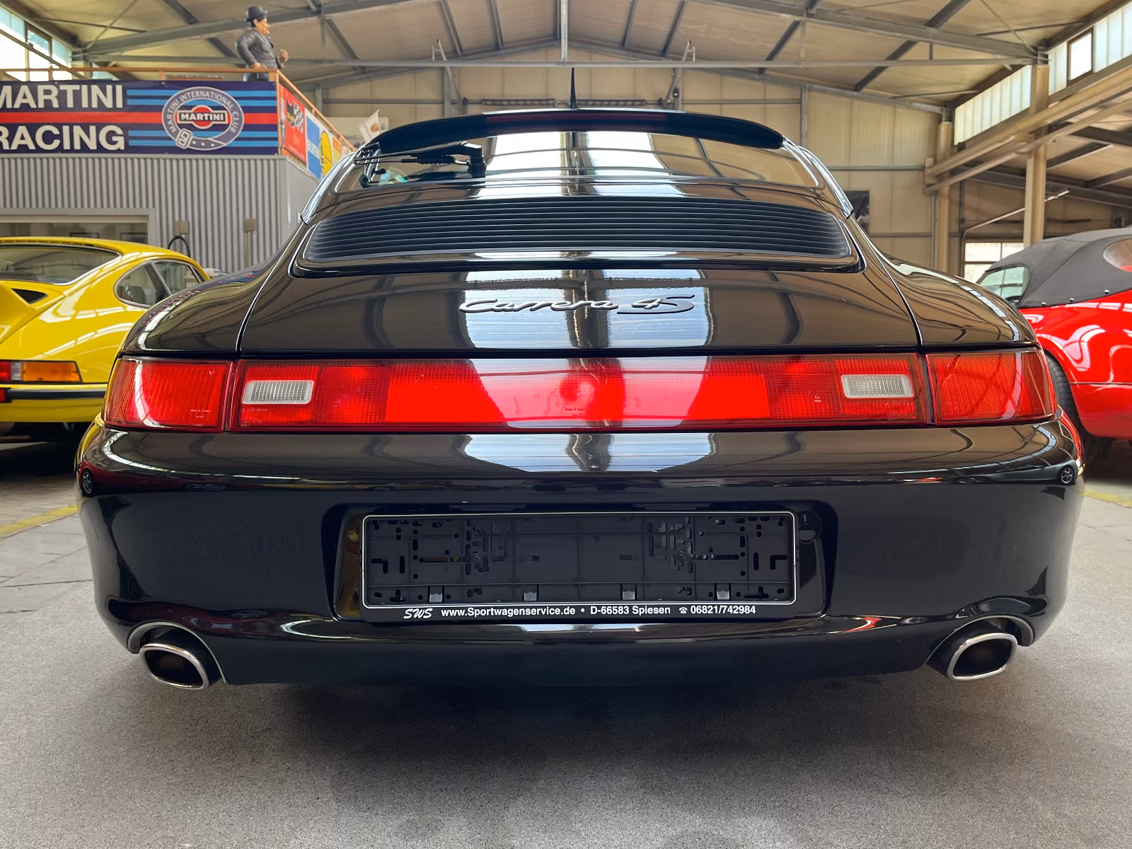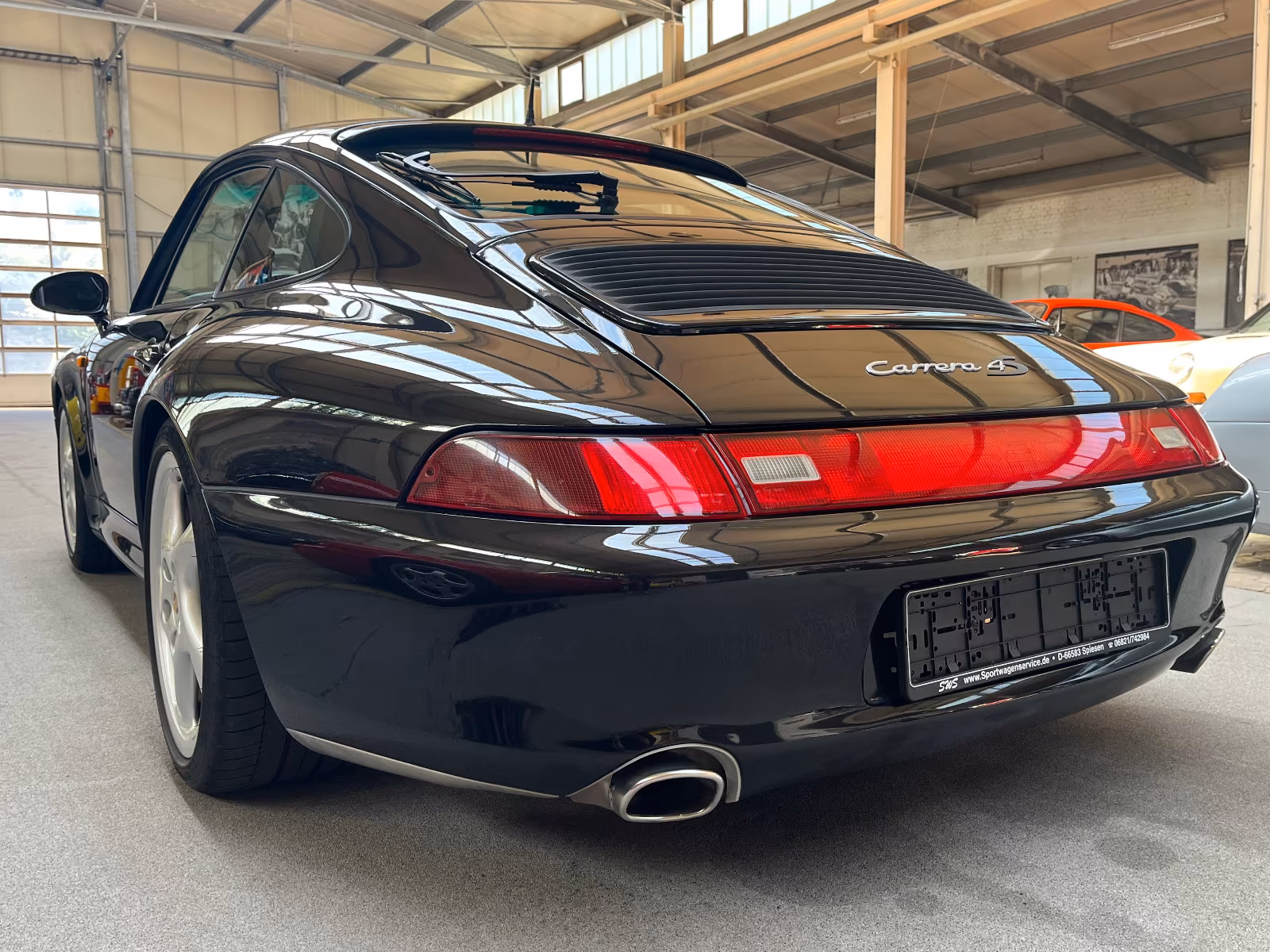 Hier haben Sie die Möglichkeit, einen Porsche 993 Carrera 4S in absolutem Sammler Zustand aus deutscher Auslieferung zu erwerben. Der Wagen befindet sich wirklich in einem außergewöhnlich guten unverbrauchten Zustand. Unsere Lackmessungen konnten an keinem Karosserieteil Nachlackierungen sowie reparierte Unfallschäden feststellen. Das Fahrzeug ist eine deutsche Auslieferung und stammt aus der allerletzten Baureihe des 993 4S (1998 FIN …ZWS…). Selbstverständlich sind auch der originale Porsche Herstellerbrief sowie das originale Kundendienstscheckheft vorhanden. Der Wagen wurde im Porsche Zentrum Pforzheim am 02.04.1998 in der Farbkombination schwarzmetallic mit schwarzem Interieur ausgeliefert mit folgender Mehrausstattung: regelbare Sitzheizung links und rechts, Innenraumüberwachung (Infrarotsystem), Windschutzscheibe mit verlaufend eingefärbtem oberen Bereich, Litronic-Scheinwerfer (Xenon), 3. Bremsleuchte in Dachblende, elektrisches Schiebedach, Radio Porsche CDR 21. In der europäischen Ausführung (RDW) hatten die 993 4S immer eine Volllederausstattung, wobei dieses Fahrzeug noch zusätzlich mit Raffleder auf den vorderen und hinteren Sitzbezügen bestellt wurde. Die Leistungssteigerung X51 (M64/20) auf 3,8L Hubraum wurde bereits 2003 nachgerüstet und in die Fahrzeugpapiere eingetragen. Im Sommer letzten Jahres hatte ein sehr guter Kunde unseres Hauses dieses Auto gekauft, ehe er den Wagen kürzlich zusammen mit einem 3,2 Coupé bei uns gegen seinen Traumwagen, einen 964 Turbo, eingetauscht hat. In diesem Zuge hatten wir in unserem Hause vor der Auslieferung eine Wartung durchgeführt inkl. Überholung des Zündverteilers und neuen Reifen. In der Zwischenzeit wurde der Wagen vom letzten Besitzer bei schönem Wetter ca. 1.200 km bewegt. Vor der Auslieferung führen wir nochmal eine Jahreswartung durch und der Käufer erhält bei uns ein Jahr Garantie auf das gesamte Fahrzeug gemäß unseren Garantiebedingungen. Alles Weitere können Sie gerne telefonisch von uns erfahren.