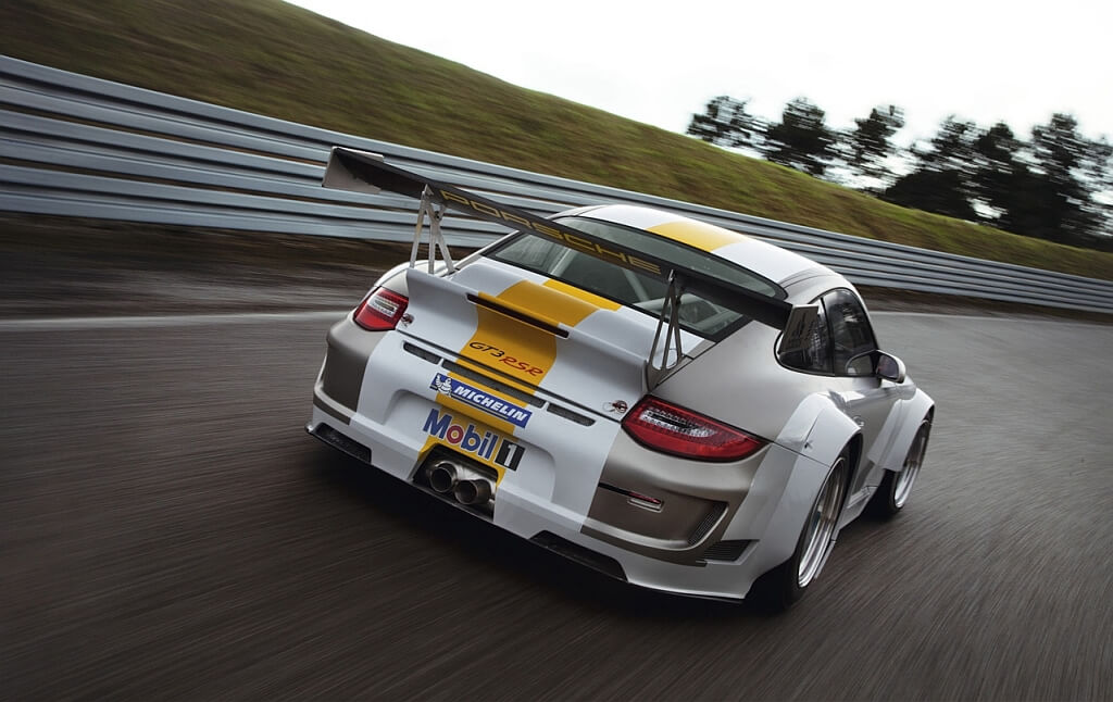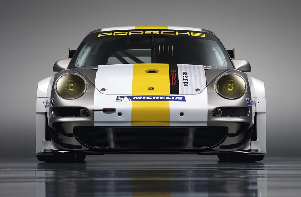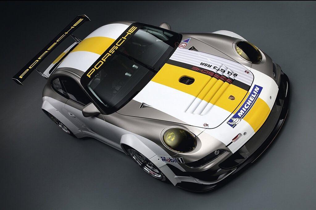 911 GT3 RSR Modell 2011 Motorisierung: Motor: wassergekühlter 6-Zylinder Boxermotor Hubraum: 3996 ccm Maße: Bohrung: 102,7 mm, Hub: 80,4 mm Leistung: 455 PS (335 kw) bei 7800 U/min. Drehmoment: 450 Nm Luftmengenbegrenzer: 2 X 28,6 mm Maximaldrehzahl: 9400 U/min. Vierventiltechnik Trockensumpfschmierung Kraftstoffeinspritzung Einzeldrosselklappenanlage Kraftübertragung: Porsche 6-Gang Getriebe Sequentielle Klauenschaltung ÖlL-Wasser Wärmetauscher Einmassen-Schwungrad Hydraulischer Zentralausrücker 3-Scheiben Kohlefaser Kupplung Hinterachsantrieb Sperrdifferential 45/65 Prozent Gewicht: 1220 kg Preis: 410.000 € Hersteller: Porsche AG www.porsche.com