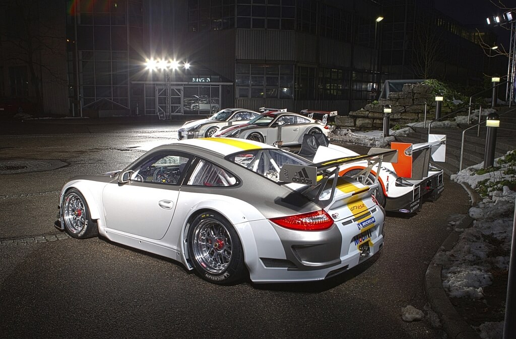 Technik Karosserie: Selbsttragende Karosserie (Basis 911 GT3 RS) aus feuerverzinktem Stahl Aerodynamisch optimierte Frontverkleidung mit Frontspoiler Aerodynamisch optimierter Unterboden im Frontbereich Verstellbarer Heckflügel 90 Liter FT-3 Sicherheitstank mit Schnellbelüftungssystem Luftheberanlage Eingeschweißter Überrollkäfig Rennschalensitz (nur Fahrerseite) mit schwer entflammbarem Sitzbezugstoff 6-Punkt Sicherheitsgurt angepasst für HANS (Head and Neck Support) Elektrische Feuerlöschanlage Fahrwerk: Vorderachse: McPherson-Federbeinachse Sachs 4-Wege Gasdruck Stossdämpfer Doppelte Schraubenfedern (Haupt + Hilfsfeder) Sturzeinstellbare Vorderachslenker Beidseitig verstellbarer Schwertstabilisator Servolenkung Hinterachse: Mehrlenker-Hinterachse mit starr aufgehängtem Achsträger Doppelte Schraubenfedern (Haupt + Hilfsfeder) Hinterachsspurstange verstärkt und stufenlos einstellbar Beidseitig verstellbarer Schwertstabilisator Gesamtes Fahrwerk stufenlos einstellbar (Spur, Sturz, Höhe) Bremsanlage: Bremsanlage mit Waagebalken Balance Regulierung Vorderachse: Einteilige Sechskolben-Aluminium-Festsättel Innenbelüftet, 380 mm Durchmesser Rennbremsbeläge Hinterachse: Einteilige Sechskolben-Aluminium-Festsättel Innenbelüftet, 355 mm Durchmesser Rennbremsbeläge Räder: Vorderachse: Dreiteilige BBS Leichtmetallräder ( 12J X 18 ET 34 ) mit Zentralverschluss Hinterachse: Dreiteilige BBS Leichtmetallräder ( 13J X 18 ET 12,5 ) mit Zentralverschluss Elektrik: Motec Display mit integrierter Datenaufzeichnung Multifunktionsanzeige mit integrierter Schaltpunktanzeige Einstellbare Traktionskontrolle Batterie 12 Volt, 40AH Generator 140 AH